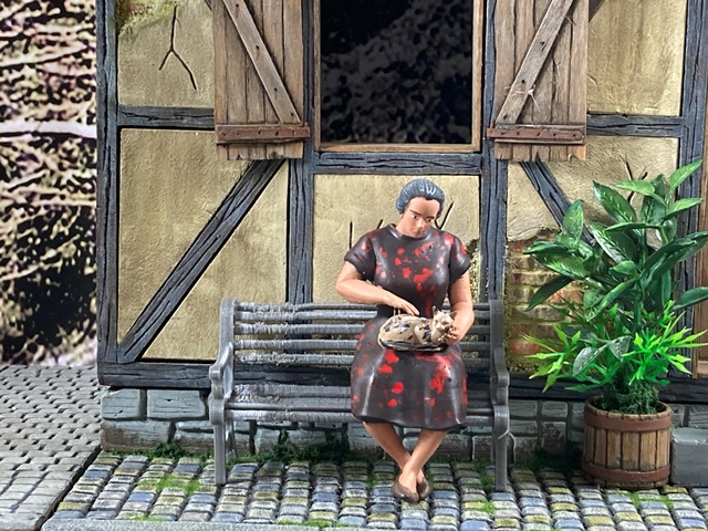 1:16 bauern figur (6)sitzen mit Katze unbemalt
